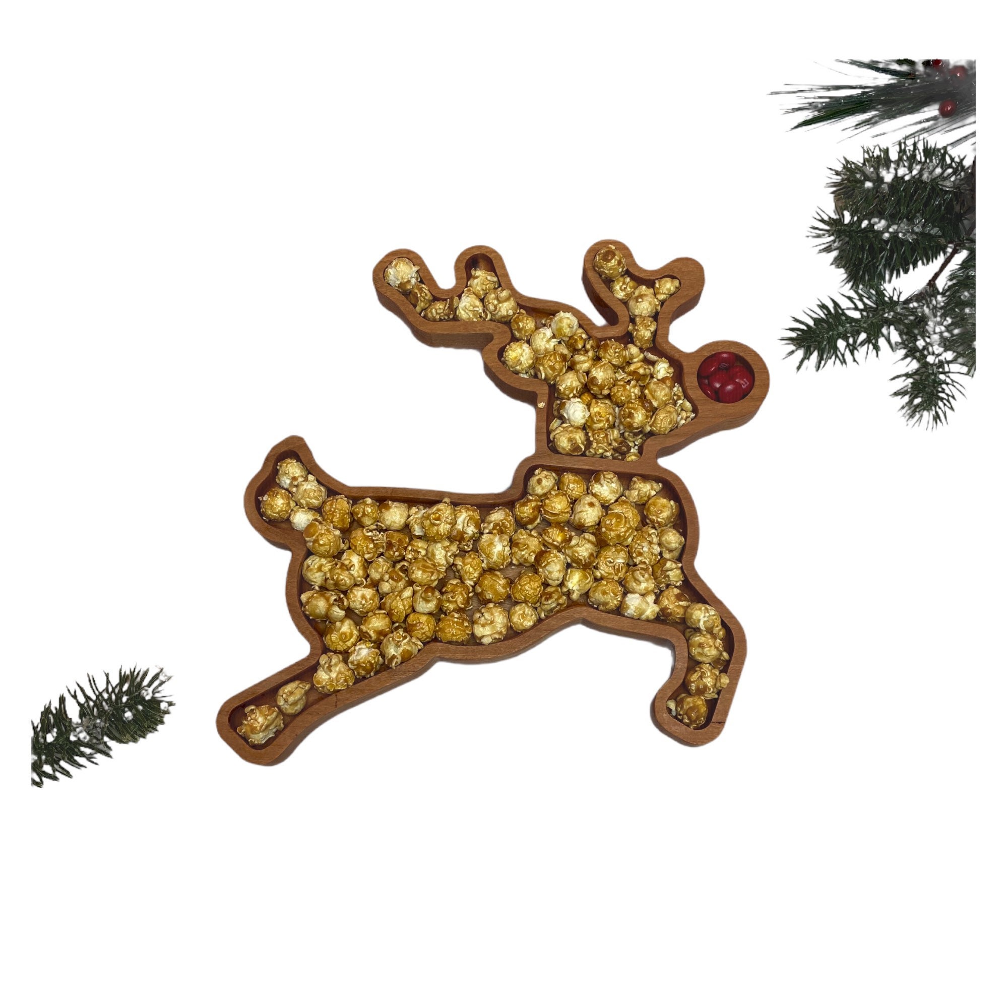 Add Rudolph the Red Nosed Reindeer to your Christmas table decor. This cherry tray designed in the shape of Rudolph the red-nosed reindeer is perfect for holding Christmas cookies or other goodies from your Christmas table. It is the perfect snack tray for holiday parties and brings back memories of childhood Christmas songs.