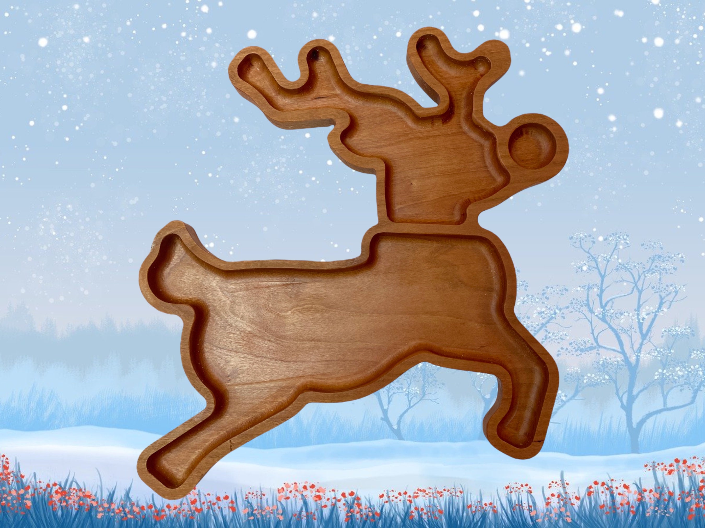 🎄This tray is made from solid cherry wood and finished with food safe oils.