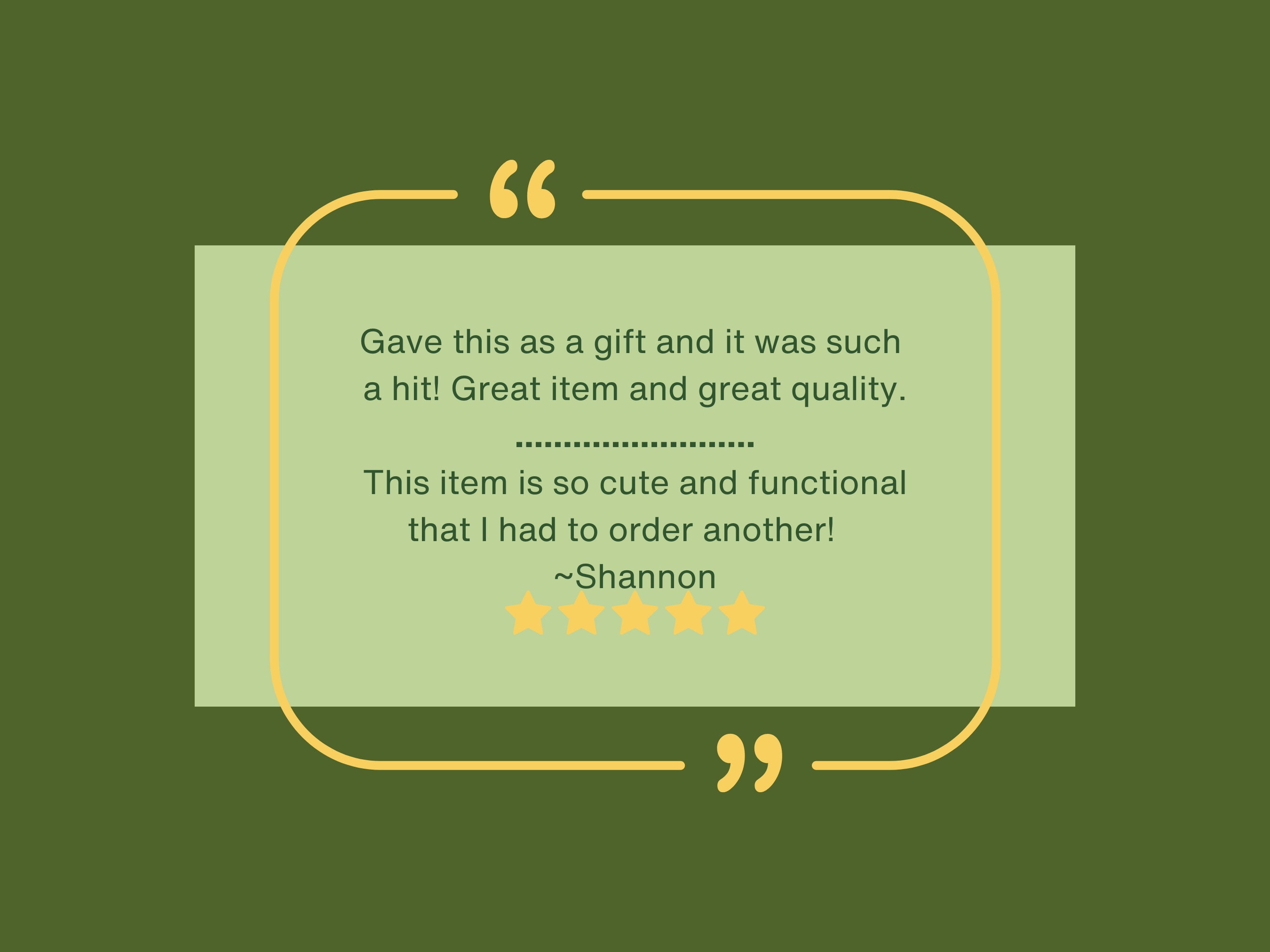 This item is so cute and functional that I had to order another! Thank you!