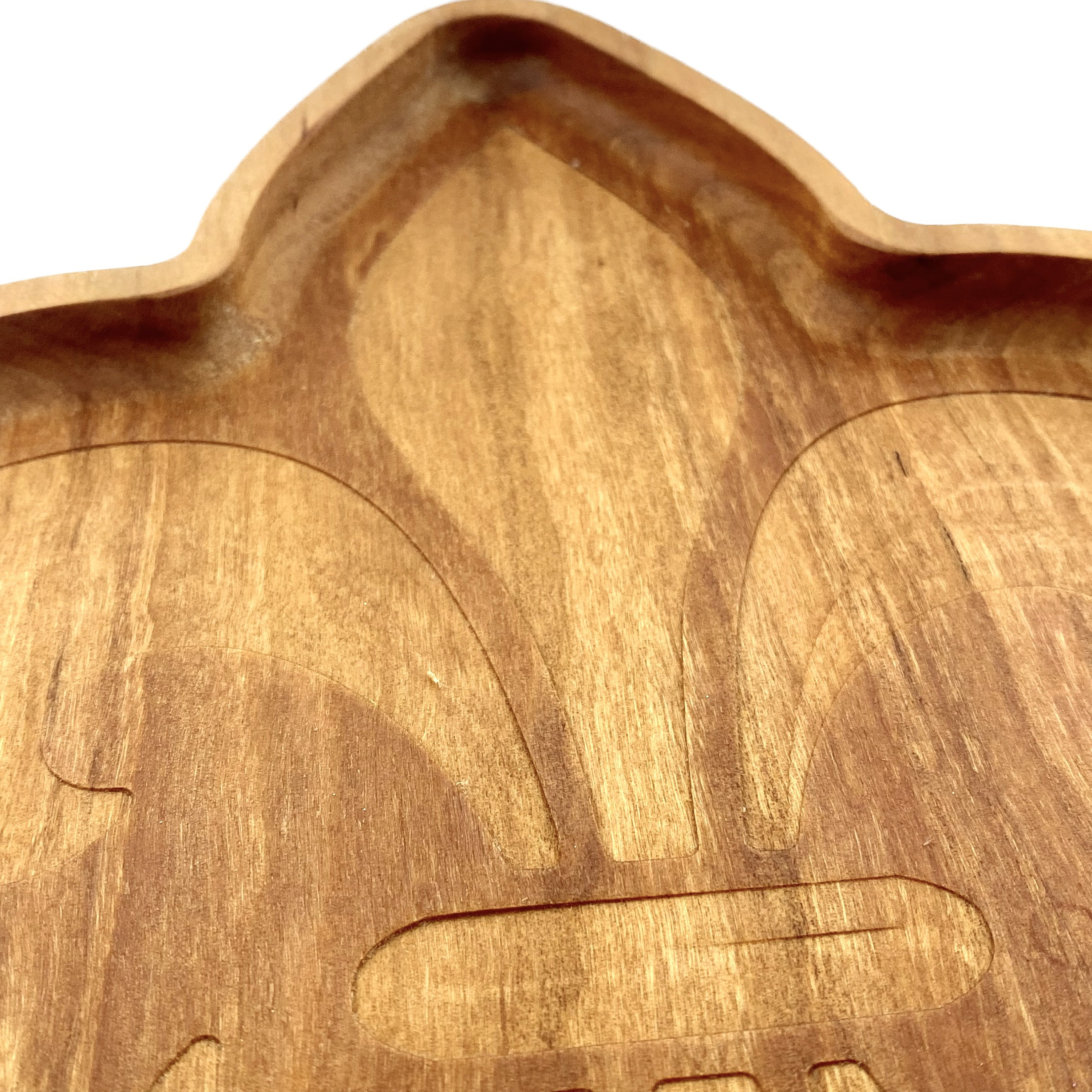 This Fleur de Lis cherry wood dish adds a timeless touch to your home decor, perfect for enhancing a French Country style accent on a coffee table or sideboard. Inspired by New Orleans design, this elegant piece doubles as both dining room decor and a functional accent for your coffee table with its classic Fleur de Lis motif.